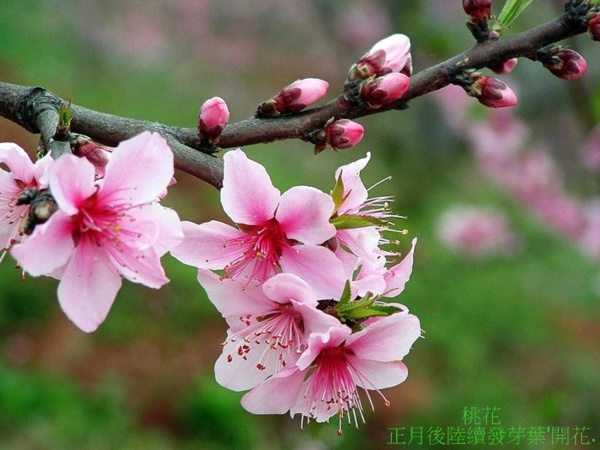 桃;落葉小喬木;葉為窄橢圓形至披針形,長15厘米,寬4厘米,先端成長而細的尖端,邊緣有細齒,暗綠色有光澤,葉基具有蜜腺;樹皮暗灰色,隨年齡增長出現裂縫;花單生,從淡至深粉紅或紅色,有時為白色,有短柄,直徑4厘米,早春開花;近球形核果,表面有毛茸,肉質可食,為橙黃色泛紅色,直徑7.5厘米,有帶深麻點和溝紋的核,內含白色種子.
