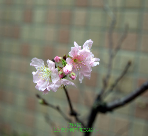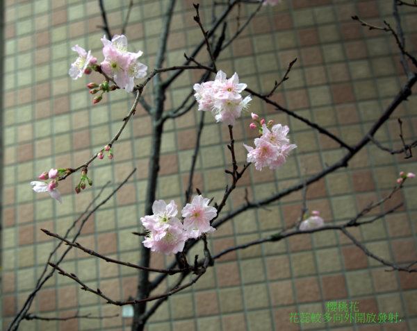 櫻; 屬於薔薇科櫻屬中一些被稱為櫻的品種(包括櫻桃亞屬(Lithocerasus)、酸櫻桃亞屬(Cerasus)等)所開的的花. 櫻花;花蕊較少,較集中.一些品種的櫻花所結的櫻桃因味道欠佳不作食用,但可作繁殖櫻花樹之用,在溫帶地區平地即能結果,在亞熱帶地區海拔則需高於500公尺.亞洲品種的觀賞櫻花最初的痕跡出現於喜馬拉雅山區(參考資料:《櫻大鑒》).唐朝時,這物種逐步傳入印度北部,中國長江流域以及南部偏西地區,台灣,韓國,日本地區.這些地區,尤其是日本,成了相對獨立的櫻花的變種發展的地方.在日本廣為種植,在現代被日本人視為花的代表.奈良縣吉野山的櫻花最為聞名,故被譽為「吉野千本櫻」.整個日本櫻花花期約為五十天,但每個地區從花開到花謝只有七至十天.櫻花種類繁多,故顏色並非純是粉紅色,相應的花有相符的顏色.春天賞櫻是日本傳統習俗之一,過去日本氣象廳每年會發表櫻花開花日期預測,是為「櫻前線」,目前櫻花開花預報已移轉至日本氣象協會發布.