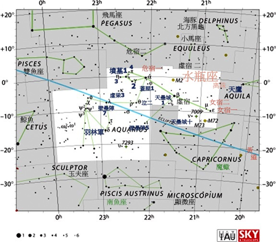 司命;共2星,位於寶瓶座,掌處罰罪過、夭壽或鬼魂的神。
