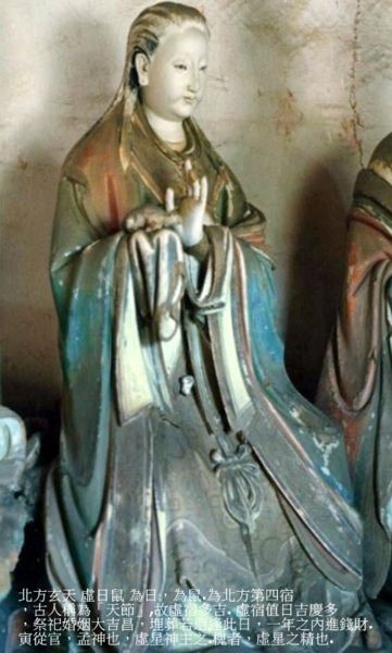 北方第四宿,為日,為鼠。古人稱為「天節」,故虛宿多吉. 虛宿值日吉慶多,祭祀婚姻大吉昌,埋葬若還逢此日,一年之內進錢財.寅從官,孟神也,虛星神主之。槐者,虛星之精也。