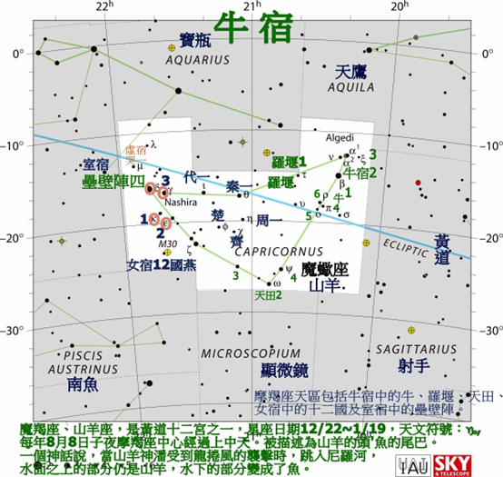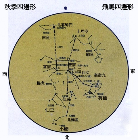 天壘城:共13星,後增2星,位於寶瓶座和摩羯座,天上的防禦工事。