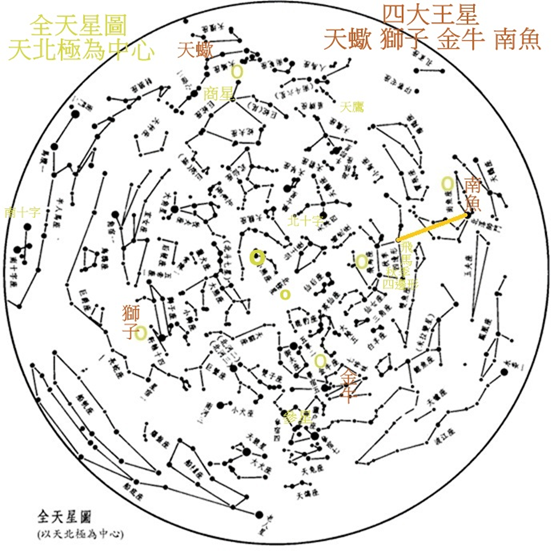 古代波斯將北落師門-南魚座,畢宿五-金牛座,心宿二-天蠍座,軒轅十四-獅子座α稱為四大王星,這主要是因為這四顆星距離黃道很近,而且四顆星幾乎均勻的分布在黃道上。