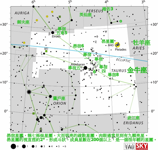 位在黃道星座的金牛座中,是顆距離太陽大約65光年的紅巨星。它是金牛座中最亮的恆星。畢宿五; 意思是"網小而柄長的狩兔網"的第五顆星。這個星官包括畢宿五(金牛座α)、畢宿一(金牛座ε)、畢宿二(金牛座δ3)、畢宿三(金牛座δ1)、畢宿四(金牛座γ)、畢宿六(金牛座θ1)、畢宿七(金牛座71)、畢宿八(金牛座λ)。畢宿五的英文名字源自阿拉伯文نير الضبران(阿拉伯文的Nā᾽ir al Dabarān),意思是"追隨著明亮者"。al Dabarān(الدبران)然後使用在包括畢宿星團的整個月宿。
