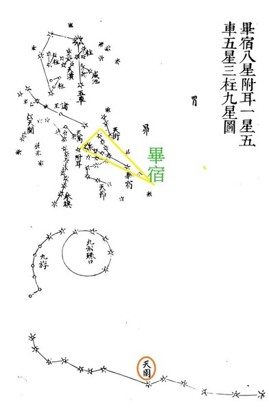 扶筐:共7星,位於天龍座,是盛桑葉的器具。