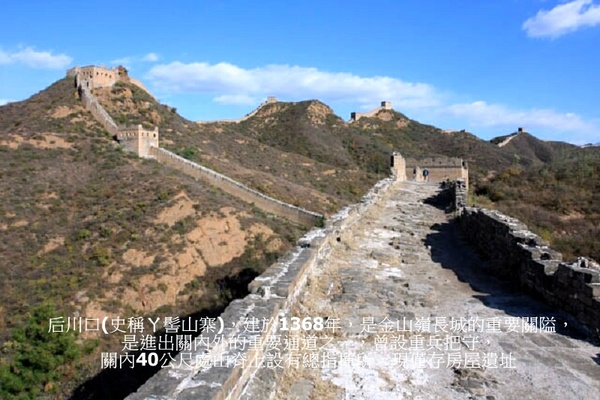 城牆 城台 在出入長城的咽喉要道上一般都設有關隘駐守.關隘一般建在狹窄的通道上,如兩山之間的最窄處,山水之間的狹長走廊,以及溪流、河谷的相交處.磚垛關’后川口為關隘之二,近鄰以”台”加強防禦.