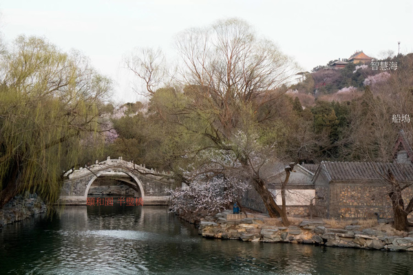 半璧橋 璧是中國古代用於祭祀的玉質環狀物,凡半徑是空半徑的三倍的環狀玉器稱為璧. 半璧橋,穿過宿雲簷的門洞北行,有一座半圓形的石拱橋,呈南北方向橫亙在後溪河上,此橋俗稱半璧橋.半璧,顧名思義,就是橋洞半圓的意思.此橋為清漪園時的建築,橋拱高大,橋下可以通行皇帝的畫舫,橋上連接南北御路,是通向萬壽山西部的必經之道.當年乾隆來遊覽時,時常乘船從前湖而來,自半璧橋下經過,登綺望軒碼頭,轉入後山西部院落;或者繼續行船,去蘇州街;也可到蘇州街東面的溪煙嵐霧碼頭登岸直接進澹寧堂;還可以曲折水行去景福閣,眺遠齋,諧趣園.