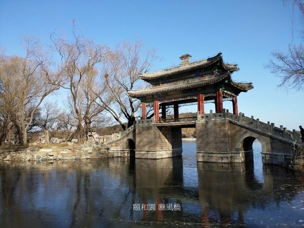 豳風橋;又名”桑苧橋” 豳風橋在清漪園時代稱為桑苧橋. 橋名來自中國《詩經》,反映古代人民農業生活的作品——《豳風》,意在表明帝王對農桑的重視.橋亭作長方形,重簷四坡頂,是一座屋橋. 新舊兩個橋名都是與農業有關的,因為在這座橋的西部原來還有耕織圖、機織房、絡絲房、水村居一組模仿江南農村景色的景點,可見乾隆愛水鄉澤國的富饒秀麗,也不捨白山黑水的冷峻粗曠.時至今日,豳風橋周圍尚存活著少量百年以上的桑樹,成為了那段歷史的見證. 豳風橋的橋身與界湖橋的橋身相比,除尺寸略小外,橋洞的造型也稍有不同,中間的橋洞為方形、兩邊為圓形. 橋洞有調節湖水的作用,中間寬大的橋洞下還可穿行小船.