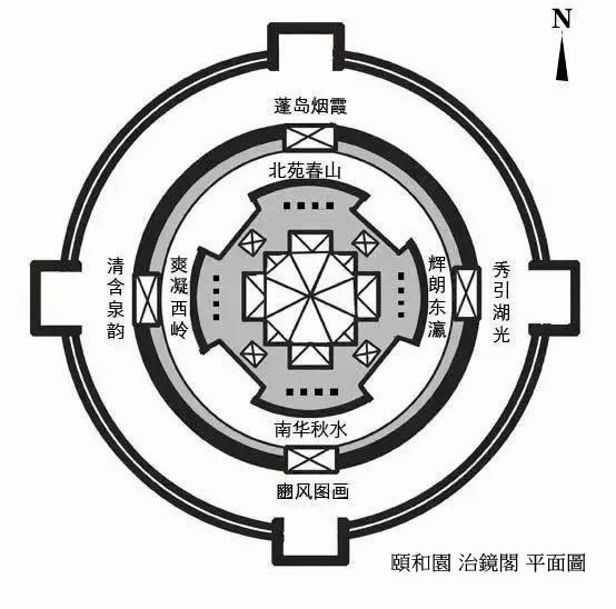 治鏡閣 治鏡閣是昆明湖中的一個島嶼,一座圓形的水上城樓. 是頤和園中的制高點,作用就是豐富頤和園到玉泉山和香山的景觀. 傳說,這裡以前曾是頤和園的秘密水牢,專門關押不聽話的宮女和太監,就止於傳說吧.另為防止附近的村民入園,守園的兵在上面站崗.在光緒年間,資金不足,英法聯軍炮轟了治鏡閣,清政府只能將這些殘剩的材料用到別的地方,治鏡閣島就成了水中的一座荒島.