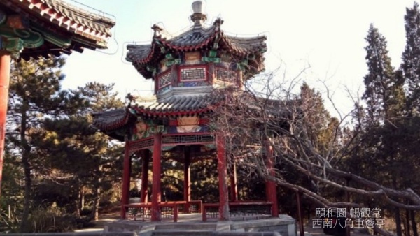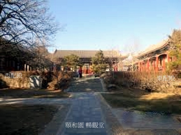 暢觀堂 位於頤和園西南隅,昆明湖西岸的山坡上,是園內西南部重要的景觀建築群, 始建於乾隆年間,是仿杭州「蕉石鳴琴」景點建的.由正殿暢觀堂、東西配殿、轉角廊以及山腳下的懷新書屋和睇佳榭組成.咸豐十年(1860年)被毀,光緒時重修.暢觀堂由暢觀堂正殿、東西配殿、西南八角重簷亭、東南單簷六角亭、土山西北山腳下及東南山腳下房32間建物組成.當年建暢觀堂,是因這裡沒有建西園牆,可將玉泉山靜明園和萬壽山清漪園的景點聯繫在一起;這裡離玉泉山外的高水湖、養水湖不遠,在暢觀堂可以觀賞到高水湖、養水湖兩岸的風光,以及大片稻田、湖畔農舍等田園風景 .