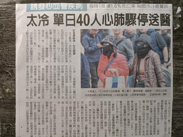天氣太冷單日40人心肺驟停送醫(115.01.12)