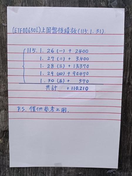 115年一月份ETF00650L盤後績效報告(115.02.01)