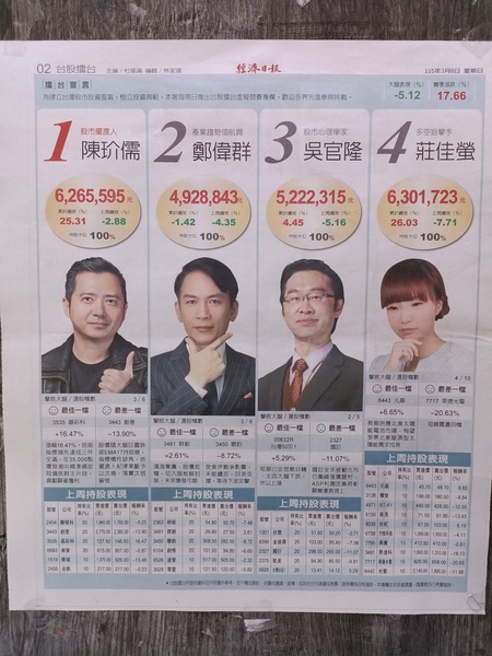 經濟日報台股擂台賽上週績效排行榜(115.03.08)