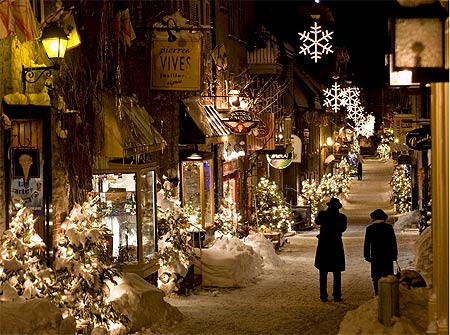聖誕佳節的腳步接近的同時,加拿大魁北克市具有歷史的小香蘭區,已在街道上裝點出濃濃的聖誕氣氛,整條街道看起來宛若置身童話故事的場景。(美聯社)
