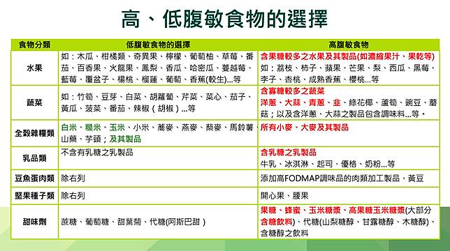 Heho健康 彭幸茹 飯後最容易出現的不適,就是腹脹、腹痛的情形,不僅會影響生活作息及工作出勤狀態,也會造成生活品質的降低,讓人形成額外的心理壓力與負擔。再加上防疫期間,大家的日常生活都出現重大的改變,也導致腸胃不適的情形增加了,這個時候也可以透過攝取低腹敏的食物來改善。 生活壓力大引發「腸躁症」 根據統計,台灣腸躁症的盛行率高達 22.1%,換算下來,約每 10 個人就有 2 個人有此問題。雖然腸躁症並沒有致命危機,但反覆出現腹脹、腹痛、便秘、腹瀉及排便習慣改變等,大大影響了生活品質。 腸躁症屬於消化道功能出現異常所致,在醫學上認為「壓力」是最大的主因,所以在治療上建議患者不過量飲食、不吃太油膩食物,並在用餐時細嚼慢嚥,以上三種措施皆可避免腸胃道出現不適。 除此之外,易脹氣的人也會被教導少服用易產氣食物,像是豆類製品、馬鈴薯、地瓜,或者是含有氣體的碳酸性飲料。但是有些人卻會發現,明明這些產氣食物都少吃了,卻還是會在飯後出現腹脹、腹痛的情形,讓他們不知道該怎麼辦? 現代人生活壓力大易有飯後腹脹、腹痛情形。 易造成腹部不適的高FODMAP食物 台灣營養基金會執行長吳映蓉博士表示,FODMAP 指的是「一群在腸道發酵的短鏈碳水化合物」,這群短鏈碳水化合物在小腸中是無法被消化和吸收的,所以容易停在腸道裡發酵產氣,或導致過多的水分移至腸道裡,形成腹脹氣、腹痛、腹瀉、痙孿等情形。FODMAP 其實是由下列 5 種物質的所組成: 1. F(Fermentable):會發酵的 表示一群無法消化、吸收的短鏈碳水化合物,會被腸道細菌發酵進而產生氣體。 2. O(Oligosaccharides):寡醣 像是半乳寡醣、果聚糖等,常會存在於某些蔬菜、水果、豆類、穀類、堅果、茶類等。 3. D(Disacchareides):雙醣 如存在大部分乳製品裡的乳糖。 4. M(Monosaccharides):單醣 如存在大部分水果裡的果糖,還有部分蔬菜及甜味劑也都會有。 5. P(Polyols):多元醇 如存在於某些蔬菜、水果及人工甜味劑中會看到的山梨醇、甘露醇。 註:A 僅為連接詞 And 的意思。 台灣常見食物高、低FODMAP分類 低 FODMAP 飲食法在國外較為常見,反倒是台灣較為少見。根據澳洲蒙納許大學所進行的相關研究中發現,患有腸躁症的人在採用低 FODMAP 飲食後,有 86% 的人可獲得症狀的改善。 台灣常見的FODMAP分類。/ 資料來源:董氏基金會整理 不過採取低 FODMAP 飲食法的話,會減少一些蔬果、雜糧類的攝取,長期下來可能會造成營養失衡的情形,所以不建議長期使用,需要醫師及營養師的專業指示下進行。 腸胃道健康的人不需要特別採用此種飲食法,其他像是幼兒、老人、飲食不正常者也都不宜使用。(閱讀更多:10個人就有2個腸躁症 低腹敏三階段飲食改善86%症狀) 參考來源: ILSI Taiwan – 腸躁症飲食治療新趨勢─低FODMAP飲食的探討 文 / 彭幸茹 圖 / 何宜庭 |