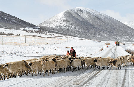 中共喉舌《人民日報》發表評論員文章再稱:「堅決粉碎藏獨分裂勢力的陰謀破壞活動」。圖為四川藏族自治地區康定山區,一名年輕藏族少女放牧情形。(法新社)