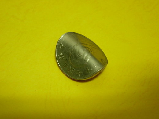 硬幣硬生生的就把它ㄠ彎