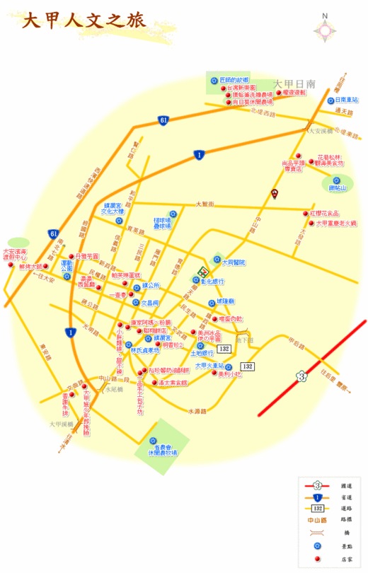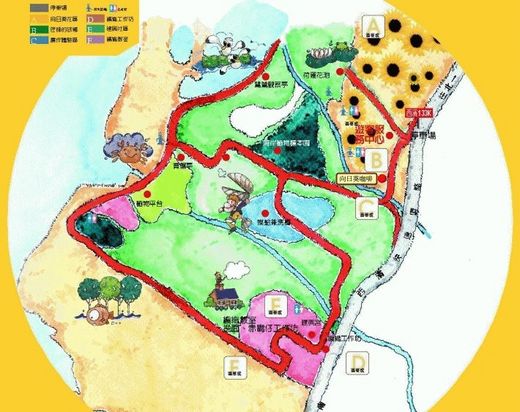 特色 沿台61線西濱快速道路到133公里下時,首先會到葵海農場,木造的涼亭旁有蓮、荷花池,不妨就先以這裡為起點跟農場主人租輛自行車,逛逛園內的向日葵休閒農場、台灣新樂園及摸蛤兼洗褲等。 沿路有平闊的視野,若騎累了還可以走上堤防看海浪如千堆雪般捲來,此時吹吹海風、聽海風在耳旁呼嘯的聲音,喝口水、深吸口氣,再往下個景點邁進。 以「大甲帽蓆」聞名的藺草產業,以精巧細緻的編織技術讓台灣一度享有「草編王國」的美譽。由於大甲藺草具吸、吐濕氣功能,所以其處理製成的帽子、草蓆可保持乾爽透氣;但因一切都得仰賴手工編織,在工業化的影響,這項傳統產業已剩零星貨單,幸運的話還可在園區內看到有人在織,不然就到各農場瞧瞧它長的是什麼模樣吧。 若剛好遇上退潮,可以從堤防旁的削波塊慢慢走向海邊,此時露出的潮間帶很容易發現招潮蟹的蹤影。唯一要注意的是,漲、退潮時間最好先詢問園區農場主人,勿貿然從堤防下到海邊,若身旁有小朋友,也請牽好以策安全。 黃昏時刻最適合在岸邊欣賞夕陽,絢爛的彩霞佈滿整個天空,眼見頭頂的天際由藍轉紫、由紫轉橙,火紅的太陽將餘暉投射在港內停泊的膠筏及漁船,這番日落美景令人屏息以待。 大甲鎮利用建興及西岐兩里50公頃田地在田區開發休閒農業園區「匠師的故鄉」,園區相當遼闊,並規劃有自行車道,更可以連結漁港、海堤,全程4公里,路況平坦、老少皆宜。 遊客若懶得走,可租單車或協力車邊騎邊看花、觀賞剛回航的船隻或是輕鬆優閒到海邊走走。 園區內還種了近15公頃的向日葵花海,10公頃的田地也分批種植波霸向日葵花,以保持長期性的花期。在向日葵花園內還有「向日葵迷宮」,更是小朋友最喜歡穿梭其中的地方。如果看花、剪花及拍照等活動玩累了,還可以到客服中心點一杯冰葵花汁品嚐一下。 現場還備有榨油機,供應向日葵花籽,指導遊客現榨葵花油。還有嘗嘗美味的「葵花大餐」,當然來到葵花田那能不體驗一下現炒本土葵花瓜子的樂趣。鄉土餐廳裡還有小火鍋及鄉土味十足的點心、野菜等,解決遊客吃的問題。 交通指引 國道三號,轉西行苑裡交流道,甲130線,轉南下接台61線(請走外側慢車道),西濱133公里處南下,即可達園區入口。 http://ezfun.coa.gov.tw/suggest_view.php?issue=38&theme2=region_c&theme=route&id=H_asun712_20071014001347&city=L