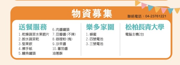 聯絡電話:04-23761221轉分機106 志工督導:楊桂珍