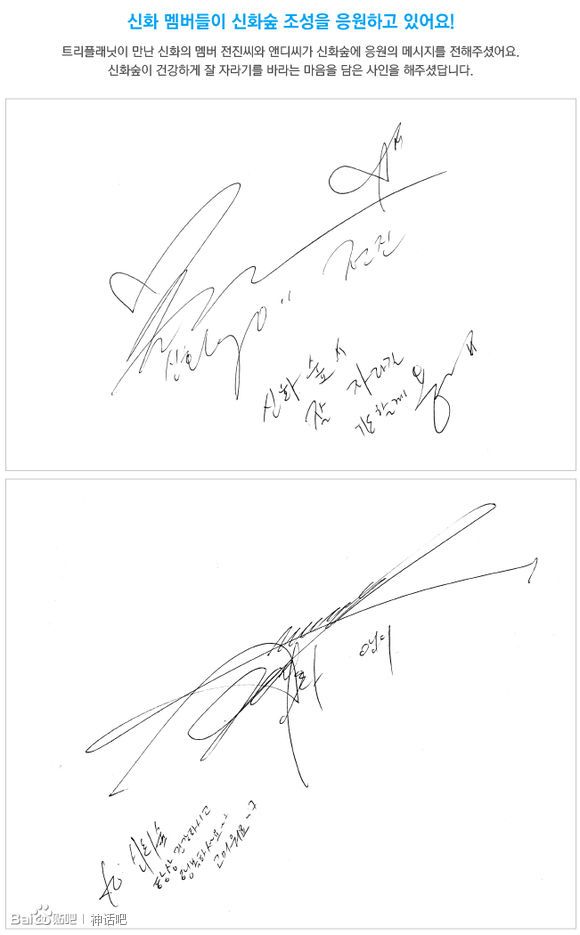與Tree Planet見面的Junjin,Andy給神話森林應援的資訊。懷著希望神話森林茁壯成長的想法給了簽名。