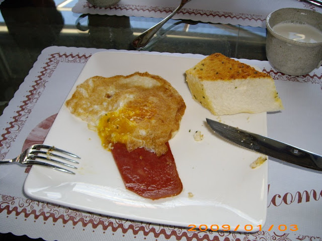 回來看一下晚餐的小火鍋與附贈的小小早餐(忘記先拍了..已經餓昏了先吃了幾口)... 早餐要等到9:30am....這點我也很不滿意..