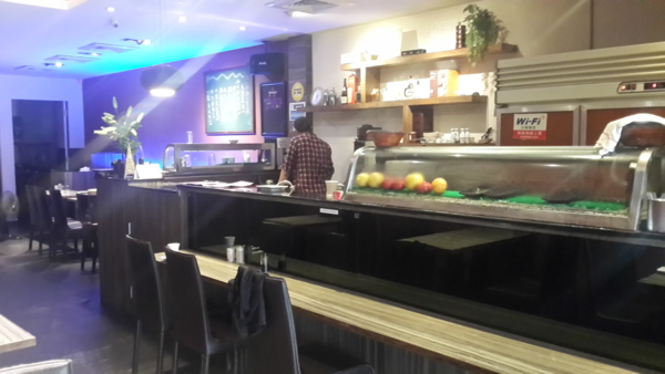 日本料理常給人裝潢氣派、餐點昂貴的印象,但鄰近桃園市政府「大間日本料理」,裝潢典雅,餐點走平價路線,深受行政園區上班族青睞;每到用餐時間,饕客絡繹不絕。 「大間」有別一般日本料理店和式裝潢,吧台以大理石砌成,天花板掛著水晶吊燈,牆壁則是打上藍色LED燈,店內放的是爵士樂、交響樂等西洋樂曲,加上店長「小簡」總是穿格子襯衫、戴鴨舌帽,坐在其中,彷彿進到日本明治初期的洋食店,感覺相當特別。