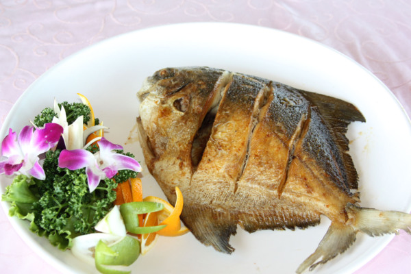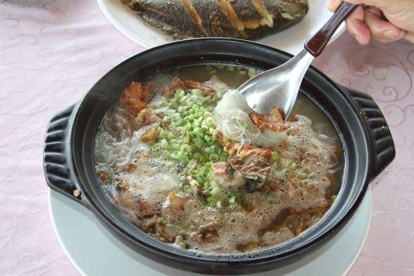 來到旋轉餐廳,可360度旋轉欣賞漁港、遊艇碼頭海天一色、桃園機場飛機起降,老闆娘呂鶯嬌介紹現撈鮮魚,打出「有青(鮮)才敢大聲說」。 餐廳知名「午仔魚、白鯧米粉湯」,全以漁港現撈新鮮午仔魚或白鯧魚燉煮,煮成湯頭甜美鮮魚米粉湯之外,還可乾煎、清蒸,一魚兩吃消費價約1000多元。