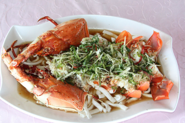 當季現撈的竹圍漁港龍蝦,尤其「清蒸」龍蝦料理,入口新鮮甜美和肉質細膩,頓時化入口中。