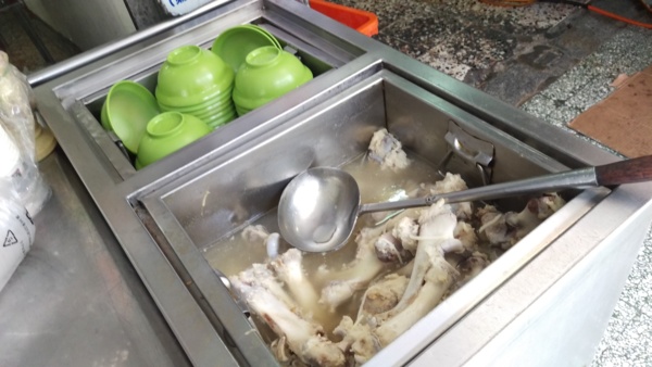 他們的大骨湯也是公認的美味,只要點餐,熱滾滾的大骨湯讓客人無限取用,有菜頭大骨湯、竹筍大骨湯、冬瓜大骨湯等,依不同的時令季節供應,數十隻大骨在鍋裡熬得入味,成為鄭記豬腳飯中最亮眼的配角。