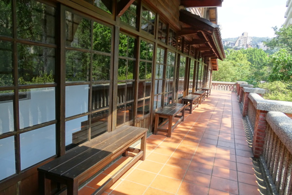 北投溫泉博物館向外眺望,可以看到一旁的北投公園及北投圖書館。