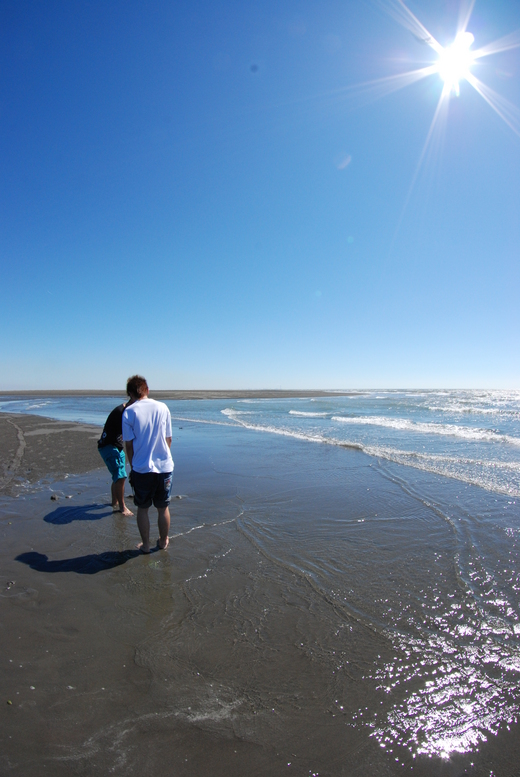 離家不遠的前面就是海,一直到大人們可以安心讓我獨自一人到海邊開始,那一片不時漂打著紓緩節奏的海洋,在我童年時光裡譜出隨性而奔放的旋律。依稀記得是在國小時,總喜歡在學校上完半天的課後,在『謝謝老師~老師再見~同學明天見!』的互道話語中,吆喝著四五個死黨,大家約好在炙熱的午後一起騎腳踏車到鄰近的小漁港,作一番自以為是的冒險。 夏風挾著海邊特有的鹹味,從遙望不見堤防的海的那一端吹來,路旁的魚塭像是砌在這海埔新生地的方糖,一顆一顆鑲在緩慢吐出著熱氣的柏油路旁,打氣機此起彼落地拍打在水面上的聲響,那聲響像是挺進堤防的筆直產業道路上,一股迎接我們的朝聖前奏。 堤防已經近在眼前,那個時候仍可看到戍守『邊疆』的阿兵哥們站崗。等爬上波提之後,那片一望無際的大海隨即在眼前身展開來,如果趕得及在太陽下山前到達,還能看見和煦的夕陽,在海平面的另一端熠熠生輝,每個爬上岸的波浪好似都身披著金衣。潮來潮往,晚了,滿載收獲的漁人們駝著夜色靠岸了......那一幅畫面,至今仍不時地在腦海深處,偶一想望,又會映照在眼前...... (感謝中慧老師的指導,本人深感榮幸) |