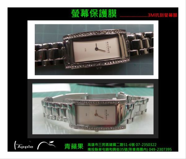 【高雄青蘋果-手機包膜】超便宜!超實用!手錶也能保護鏡面不刮傷.手錶包膜.貼膜.鏡面膜 07-2350322南投/草屯/竹山/埔里/高雄/台南/屏東/包膜最佳推薦青蘋果greenapple - 各式3C產品包膜、螢幕保護貼、包膜手機、包膜平板、包膜筆電、包膜相機、防指紋螢幕保護貼、9H抗刮螢幕保護膜(鋼化膜)、正版授權KITTY保護膜、抗藍光膜 青蘋果(高雄.屏東.台南.南投.草屯.彰化.台中專營-二手手機買賣收購/手機維修/手機平板配件/apple軟體JB/二手筆電收購/二手相機收購/手機包膜/3C產品包膜/禮券(漢神.家樂福.SOGO.新光三越)禮券收購/遊戲機收購/收購二手單眼鏡頭 手機包膜/螢幕保護貼/iPhone系列專業包膜/Samsung系列專業包膜/HTC系列專業包膜/sony系列專業包膜/nokia系列專業包膜/ LG系列專業包膜/ASUS系列專業包膜/Motorola系列專業包膜/
