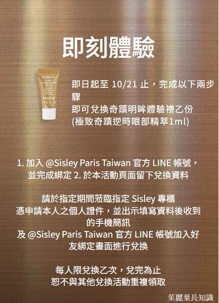 Sisley體驗禮——兌換極致奇蹟逆時眼部精萃~~10/21止