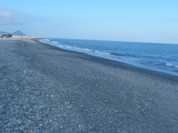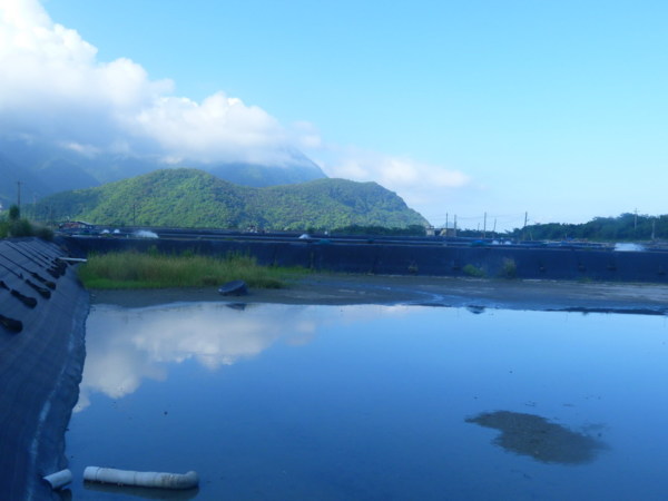我們在一處充滿魚塭的地方下車,穿越防風林,便到了一片鋪滿了細碎岩 石的海岸,海浪很平,岸上有些捕魚郎在平坦的岸上整理漁網,我試著在 岩石中尋覓石頭的線條,此刻海岸線的輪廓在黃昏時顯得格外朦朧,如青 春洋溢的少女般。