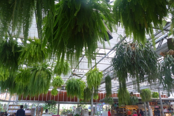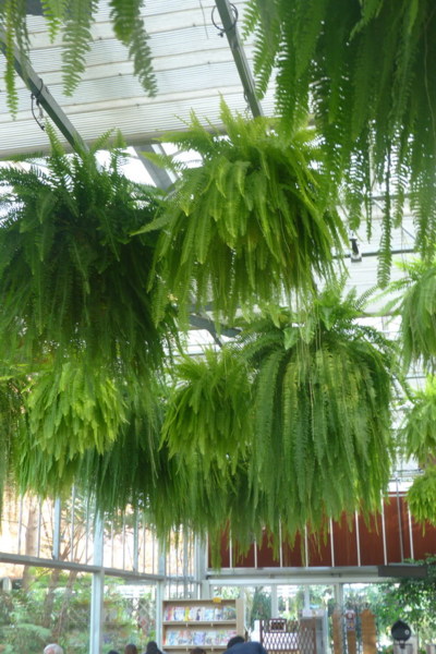 最後,我才進入有著偌大玻璃帷幕的餐廳參觀,一進餐廳,目光所及的除了喝著 下午茶的遊客和整齊排放的桌椅外,就是掛滿屋頂的綠色盆栽。