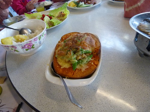雖然沒有高級的食材,卻將平常人家的菜餚發揮了創意,使得用餐者感到不同的味覺享受。如焗烤南瓜,起司的香氣與南瓜的甜結合成頗為爽口的菜餚;櫻花蝦炒飯則散發海洋的鮮味;而觀音蓮的葉片沾著桂花蜜入口,原本的酸澀味立即被桂花蜜的甜香給掩蓋下去。