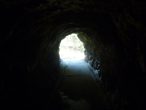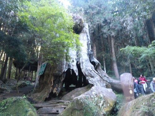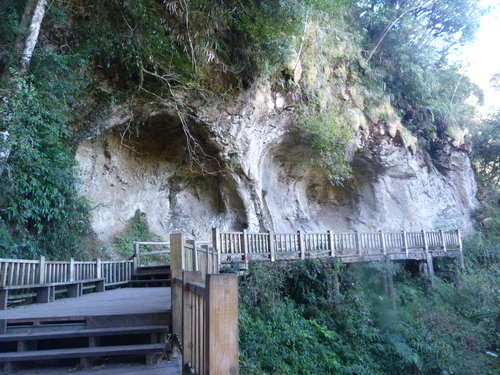 走過瀑布,到達另一座山頭,又有著另外的階梯,路標指著天地眼,為了瞭解天地眼的模樣,於是撫級而上,通過一個岩洞後,即看到千年檜木,再沿著階梯繼續爬,終於來到階梯的盡頭,便看到所謂的天地眼。拍了照,便沿著原路下山。