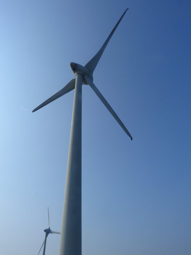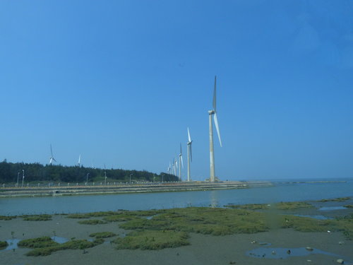 高美濕地 離開好望角 ,往南進入台中,來到一處因焚燒鋼琴而聞名的高美溼地 ,要進到溼地,先得經過兩排羅列的整齊的風力發電機,然後便是一排長長的防波堤,堤外即是綿延數里的海岸溼地。