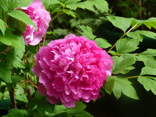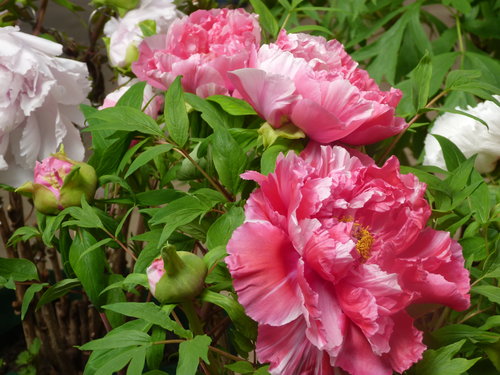 每種牡丹花都極具特色,嫵媚撩人,無怪乎詩人墨客總以其為題,或為詩吟誦,或入畫品賞。 牡丹花區的對面則是鬱金花區和各色植物形成一個花園,不過風采均被牡丹花區佔盡了。