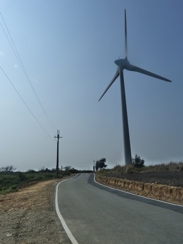 第一天 苗栗好望角 一早遊覽車集結完畢,便開上高速公路,輾轉來到中台灣沿海地區,從61號快速道路下,蜿蜒著小路,來到著名的風力發電機群四處散立的好望角 坡地。