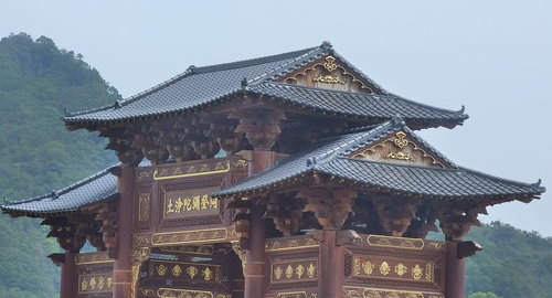 幾經迂迴輾轉,金碧輝煌的牌樓就矗立在群山圍繞中。