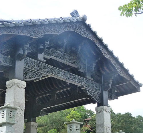 與台灣傳統廟宇建築風格稍有差異的朝聖寺,從主體建築的架構中 ,感覺略帶東洋品味,少了台灣廟宇煙霧繚繞的氤氳,卻多了幾分 寧靜安詳。
