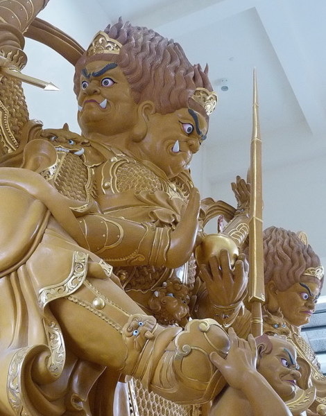 除了逗趣的小沙彌外,廟堂內外更供奉了上百尊神佛雕像,有慈眉 善目如觀音大士、有威武莊嚴如武聖關公……巧奪天工的匠師將每 座神佛雕琢得栩栩如生,觀後一股向善的心不禁自然流露!