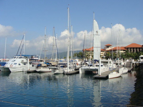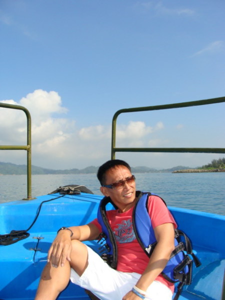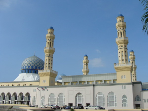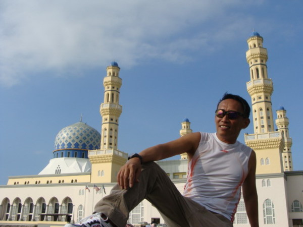 難得工作告一段落,與同事商量著到哪裡去度假好呢?共同的結 論是不要整天坐車的,最好是定點旅遊的行程。於是分頭上電腦、報 紙找。最後由任勞任怨的某女同事一手包下所有聯絡事宜,我則只要 付款後便像個大老爺似的等候行程的安排。 第一天 由於是定點旅遊,所以我們六人捨棄了傳統跟團的旅遊型態,從 訂機位、住宿房間都是自個辦理,為了節省旅費,我們首次搭乘馬航 的廉價航班,出發前一再被告誡行李愈簡單愈好,出發上了飛機,果 真所有資源都沒有,心想飛到目的地不過幾個小時,忍一忍就過了。 忍耐了幾個小時,終於在沙巴機場降落,出到機場,當地的導遊 已經等在出口(導遊也是在台灣時就先選好),一上交通車便開始了 沙巴的旅程,由於沙巴是海島地區,所以處處可見沙灘、涼亭、椰子 樹,真是一幅熱帶景象!第一站我們被安排參觀沙巴島上極具特殊建 築風格之政府機構,遠看像是飛彈頭,在陽光下顯得特別閃亮;近看 則裡頭有許多電梯直達屋頂,這棟建築蓋在海邊,從海上望過來應有 不同景觀。 停留一會便又起程往下一個目的地,原來是參觀沙巴最大的清真 寺,剛才坐車經過就有瞧見,心中還在狐疑,這漂亮至極的建築是何 等重要人物的居所。