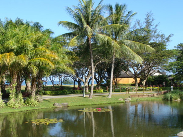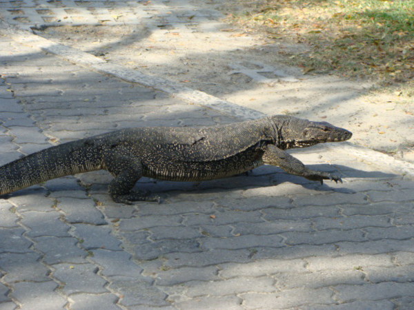 用餐間我再環顧四周,發現白天的渡假村景色與晚上的渡假村截 然不同,舉目所見不是碧海藍天,就是綠樹如蔭,我們還發現竟有隻 龐然大蜥蜴在園區內悠哉散步,一點也不怕園內遊客。
