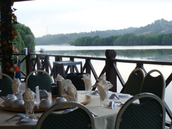 今日晚餐,我們到了一家位於河畔的餐廳,景色雖美,但是蚊蟲 也多,大夥忙著趕蚊子,已經忘了吃過哪些佳餚。