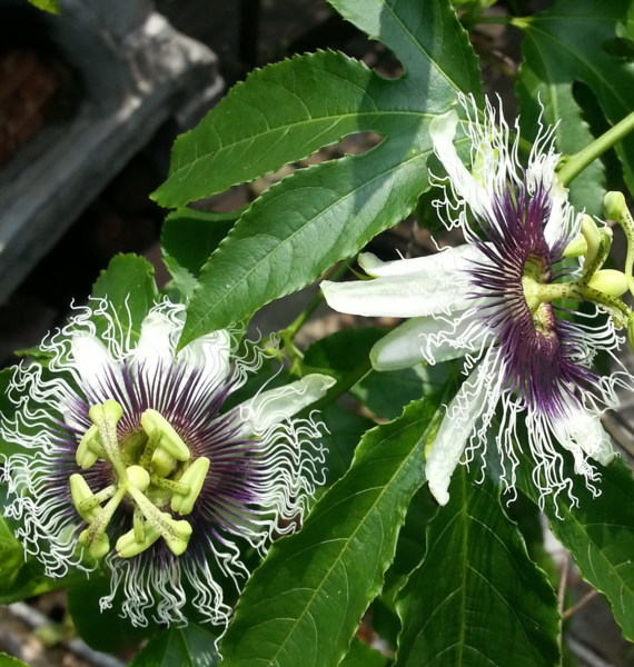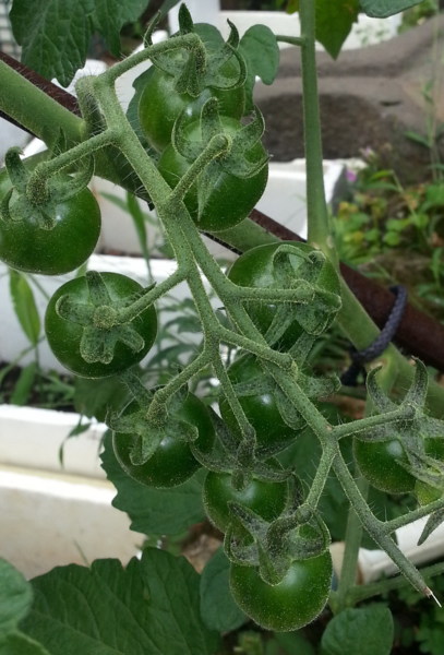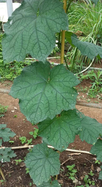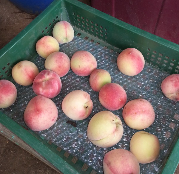 因為每棵樹上都結實纍纍,所以不用多少時間便每 個人的鐵桶都裝滿了桃子,把戰利品帶到鐵屋準備稱重 ,等待期間便四處參觀,期待發現更多新大陸。我看到 了在這兒種的植物特別肥大、多產,像:比臉還大的瓠 瓜葉子,身上掛滿了成串小番茄的番茄樹,以及樹梢上 開滿了白色花朵的軟心芭樂,還有四處攀爬的百香果; 似乎在這塊田地裡的植物都長得特別健壯,我想應該是 農地的主人下了很大的苦心,悉心照顧他們,才有今天 的成果。