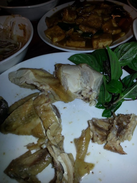 飯菜終於送上桌了,他們出菜的速度果然很快,其 中有幾道菜色應該是該餐廳的絕活,例如:白斬雞的每 塊肉都十分有彈性,咬起來一點也不柴;雞皮厚實富油 脂,卻不會過分油膩。