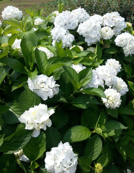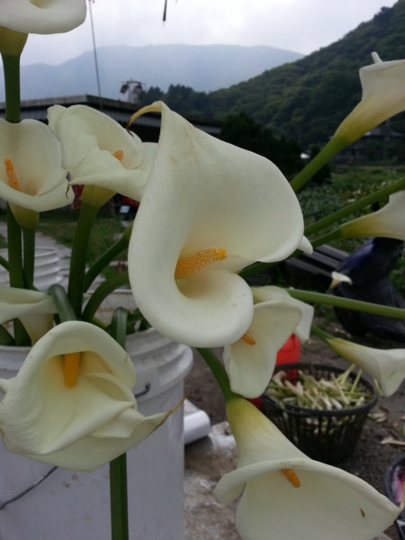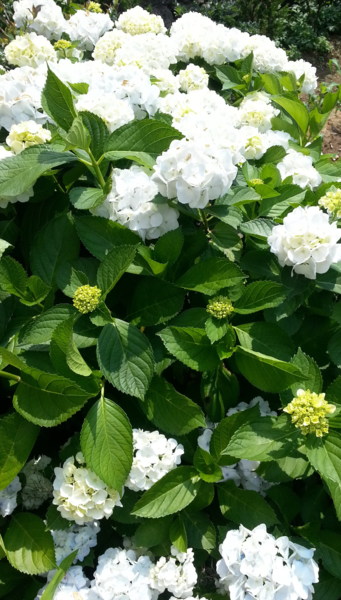 花田中只剩下一些比較晚開的海芋,此刻已是海芋 花期已過,取而代之的則是色彩多元 、花型碩大的繡 球花躍上舞台的時機,在花田四處都能發現繡球花正準 備大展身手的可愛模樣;