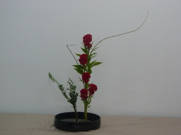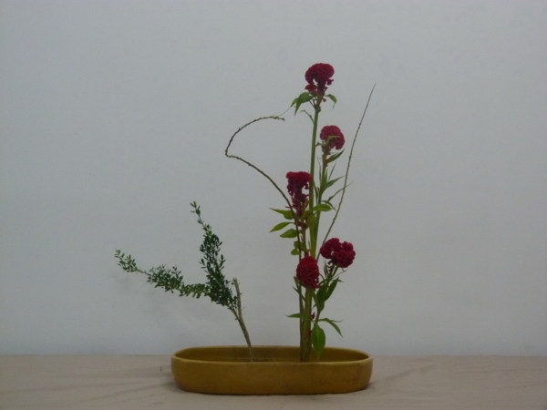 花材:金柳1支 米柳3支 雞冠花5支