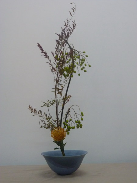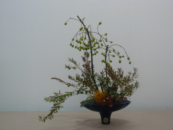 生花新風體:表線苦苓子的枝幹和果實的美為主